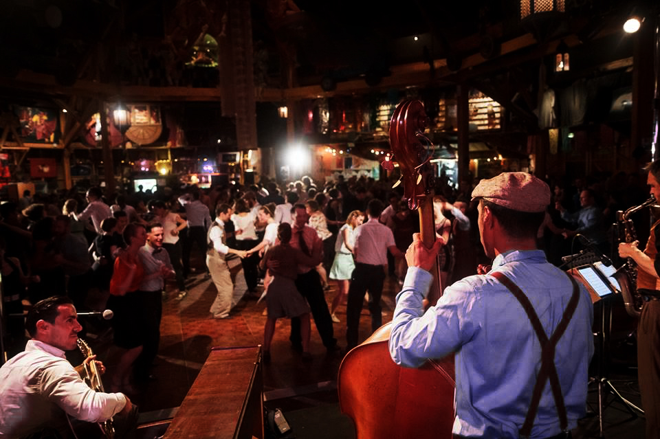 Prenez un bal de village typique, ajoutez-y des musiciens mordus de swing des années 1930, saupoudrez le tout de guitares classiques et manouches, un zeste de voix pour donner du coffre à l’ensemble et fredonner les airs d’autrefois, vous obtiendrez un cocktail détonnant de chansons et de swing à danser.